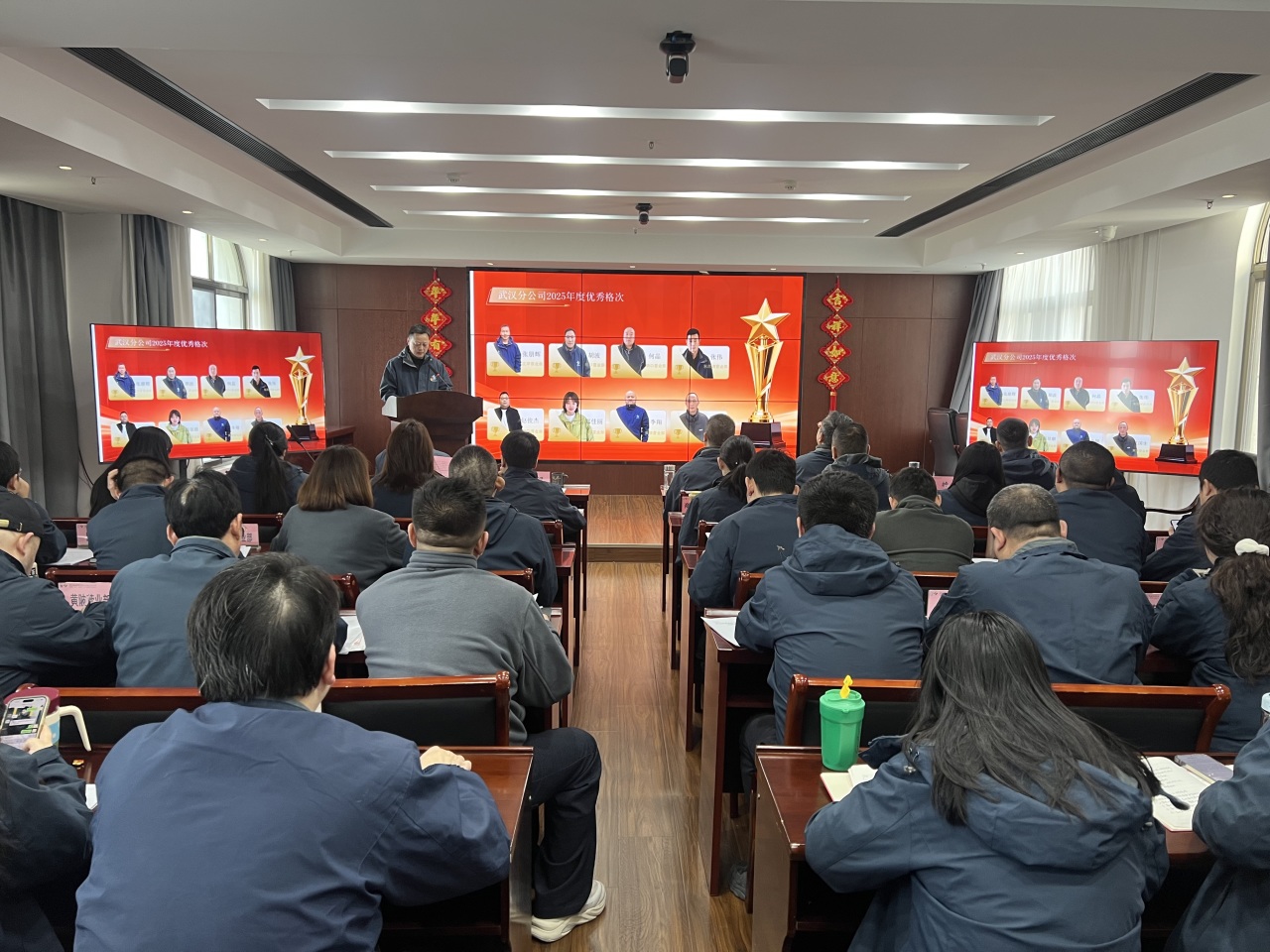 武汉分公司领导班子、各部室、事业部及营业部全体在岗员工、受表彰对象共计140人参加会议。