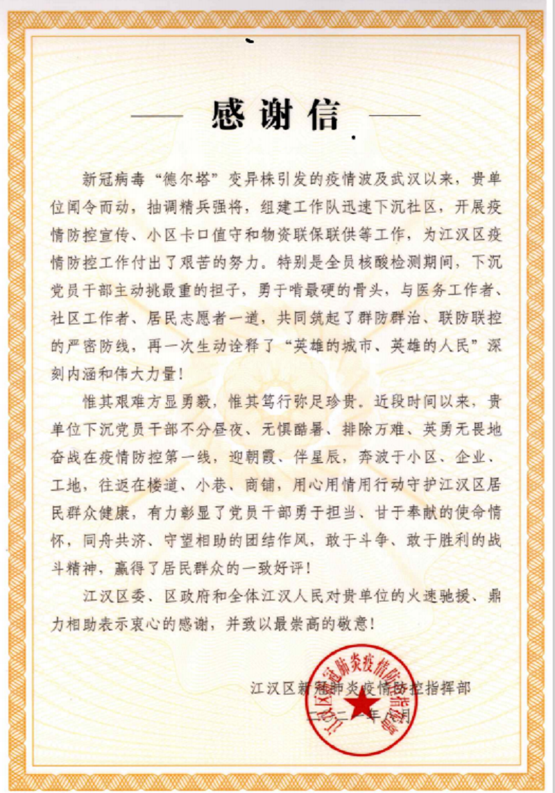 ——湖北盐业下沉服务队获中共江汉区委通报表扬