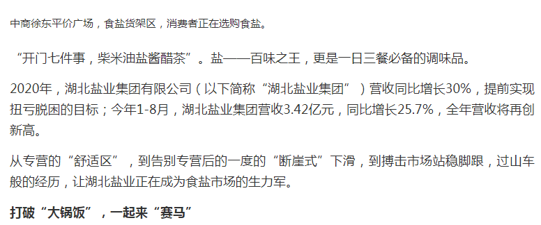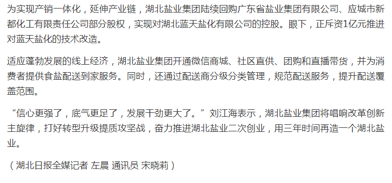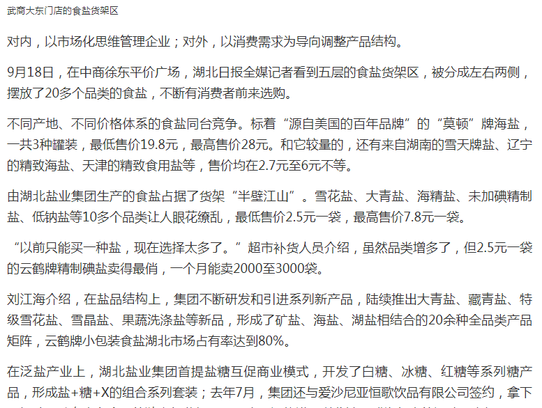 湖北日报:《三年,再造一个湖北盐业!湖北盐业集团改革求生》