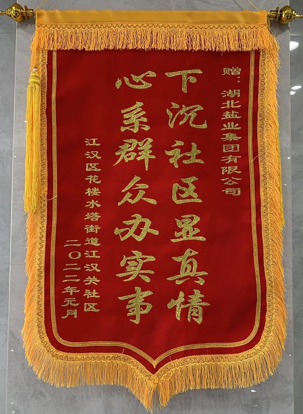 近日,武汉市江汉区花楼街办授予湖北盐业集团有限公司“最佳下沉单位”荣誉称号,并专程颁授锦旗和荣誉证书,对我司党员下沉工作给予褒扬。