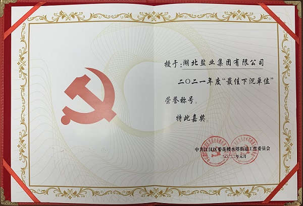 “下沉社区显真情 心系群众办实事”湖北盐业集团有限公司荣获“最佳下沉单位”荣誉称号