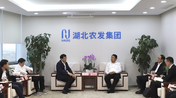 11月7日,红安县委副书记、县长胡广一行到访湖北农发集团,与集团党委副书记、总经理杨良锋座谈交流。