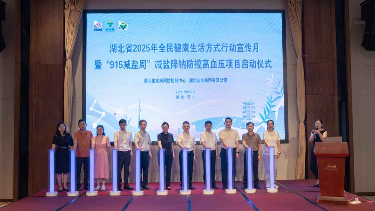 9月16日上午,由省卫健委、省疾控中心、湖北盐业集团联合举办的湖北省2025年全民健康生活方式行动宣传月暨“915减盐周”减盐降钠防控高血压项目正式启动,省卫健委、省疾控中心、湖北盐业集团领导与项目市州负责人代表一起启动项目。