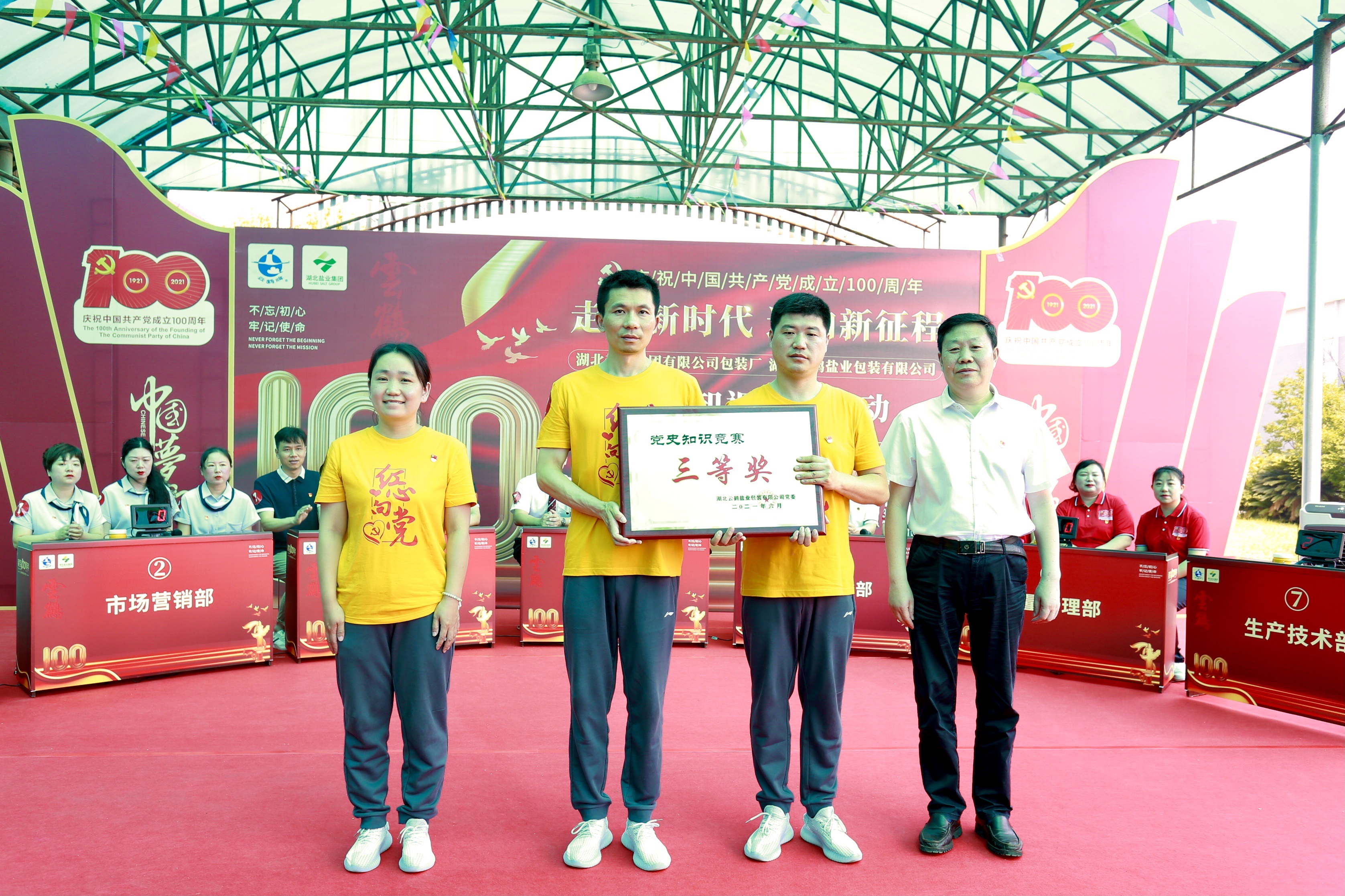 6月22日,湖北盐业集团有限公司包装厂 、湖北云鹤盐业包装有限公司举办主题为“走进新时代,迈向新征程”党史知识竞赛,21名党员选手同台比拼,围绕党史、新中国史、改革开放史、社会主义发展史等内容完成必答、选答和抢答题。省广电局党组成员、副局长,省党史学习教育巡回第十指导组组长杨陈清同志出席了活动。