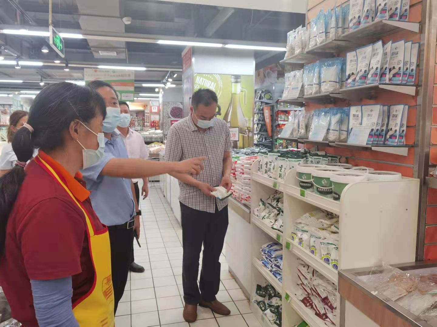 黄石分公司负责人范亮对当前主要工作、存在的突出问题进行了汇报,刘江海指出了黄石分公司下一步需要加强和改进的重点工作和努力的方向。随后,刘江海先后到城区农贸市场、阳新县大型商超实地调研。在农贸市场,刘董事长与经营户面对面交谈,了解云鹤盐以及竞品在市场上的销售和价格情况。针对部分经营户对大袋白糖的需求,刘江海现场就盐糖互促工作提出要求。在阳新县大型商超,刘董事长向超市理货员了解了各类盐品的销售情况,对桶装洗涤盐的上柜陈列给予了肯定。