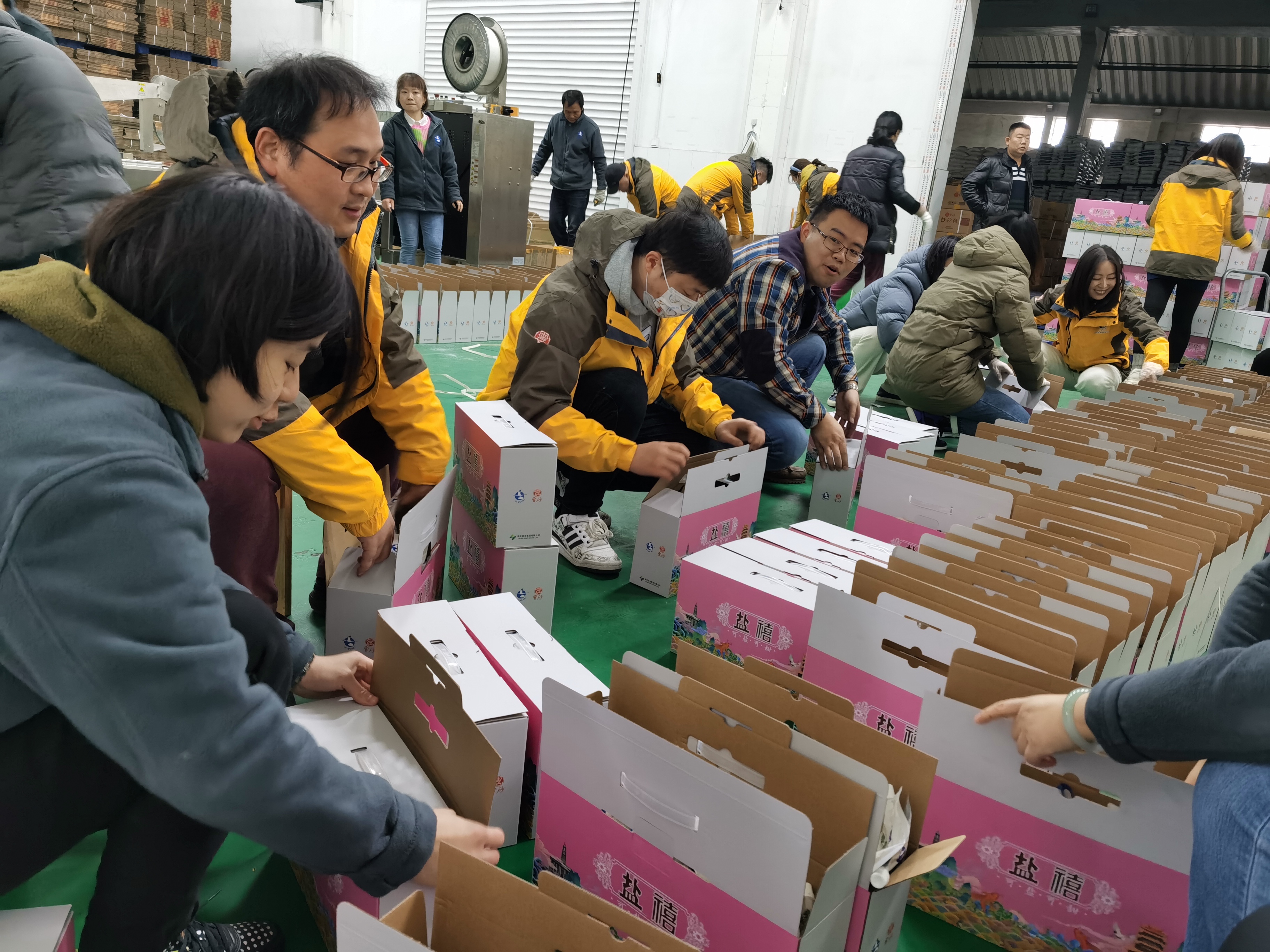 全员参与 同心协力 ---武汉分公司本部全体员工参与盐禧礼盒分装工作