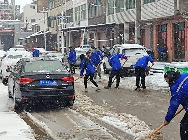 2月6日夜间,新年首场降雪翩然而至,银装素裹的美景给大家带来欣喜,也给员工安全出行带来不便。公司党员干部职工积极开展扫雪行动,清扫生活区主干道路和公共场所内的积雪,从小事做起,传递正能量。