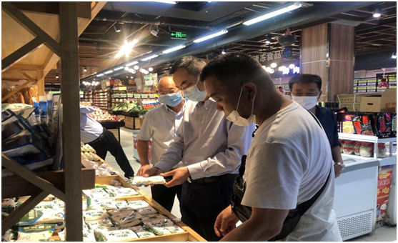 (刘江海在商超卖场察看货架情况)