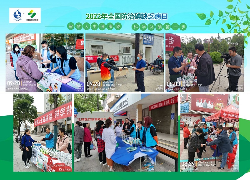 2022年5月15日是我国第29个“防治碘缺乏病日”,为进一步提高公众对碘缺乏病危害的认识,荆州分公司与疾控、卫生等相关部门联合开展主题为“智慧人生健康路 科学补碘第一步”的宣传活动。