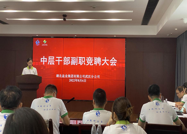 为进一步落实湖北盐业集团有限公司武汉分公司(以下简称“武汉分公司”)三项制度改革工作,建立“公平、公开、平等、择优”的干部选拔任用机制,树立重实干重实绩的用人导向,激发员工干事创业活力,建立一支信念坚定、勤奋务实、勇于担当、清正廉洁的高素质中层干部队伍,8月5日至6日,武汉分公司在十楼会议室召开中层干部公开竞聘大会。