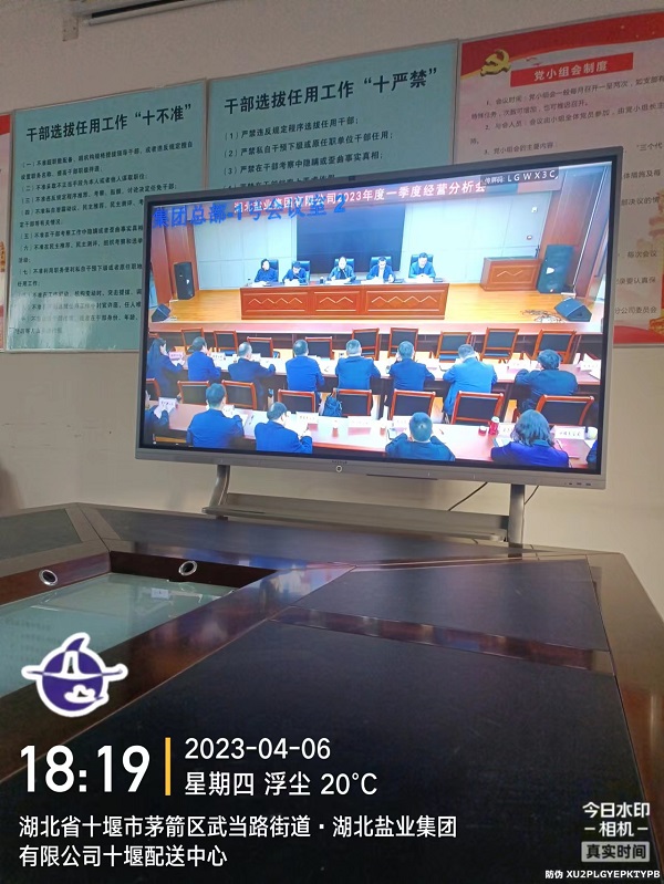 2023年4月6日,湖北盐业集团有限公司十堰分公司组织各县(市、区)分公司中层干部参加湖北盐业集团一季度经营工作视频会,认真聆听并领会会议精神,特别是董事长的讲话精神,简明扼要的为基层下一步的工作举措指明了方向。