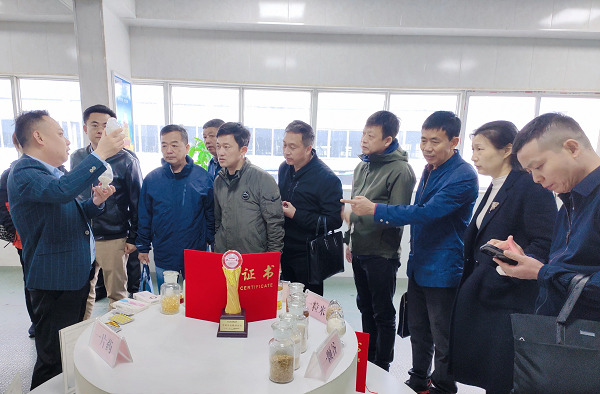 随后,学习考察组一行来到湖北省现代农业有限公司,先后参观了产品展示厅及生产车间等地。在产品展示厅,现代农业副总经理韩光伟详细介绍了“楚花香”品牌产品研发、生产工艺、市场前景等相关情况,讲述了“吃干榨尽”每颗稻谷背后的故事,从一颗颗小小的稻谷,到一粒粒稻香宜人的大米、到一滴滴色泽清透的稻米油,再到一片片谷维素药品,实现了企业从订单种植到大米、食用油加工再到生物制药全产业链发展格局。