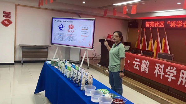 吕倩,武昌分公司出镜率最高的宣讲员。她以“科学食盐、健康用碘”为主题为大家讲解科学健康用盐知识。无论多么疲劳,她始终面带微笑地为居民朋友们讲解食盐健康知识,嗓音虽有沙哑,但她发出的声音很温柔。高温天气逼得很多人都宅在空调房里不出门,所以要想抢抓客流量高峰期组织一场品宣活动就显得非常的不容易。她和宣传团队一起克服困难,精挑细选时间与场地,不厌其烦多方协调,顶着酷暑布置现场,每周坚持开展商超街头品宣促销活动及进社区产品推介活动2次,向广大市民倡导“少吃盐、吃好盐、吃健康盐”的科学消费理念,传递“云鹤”品牌价值。