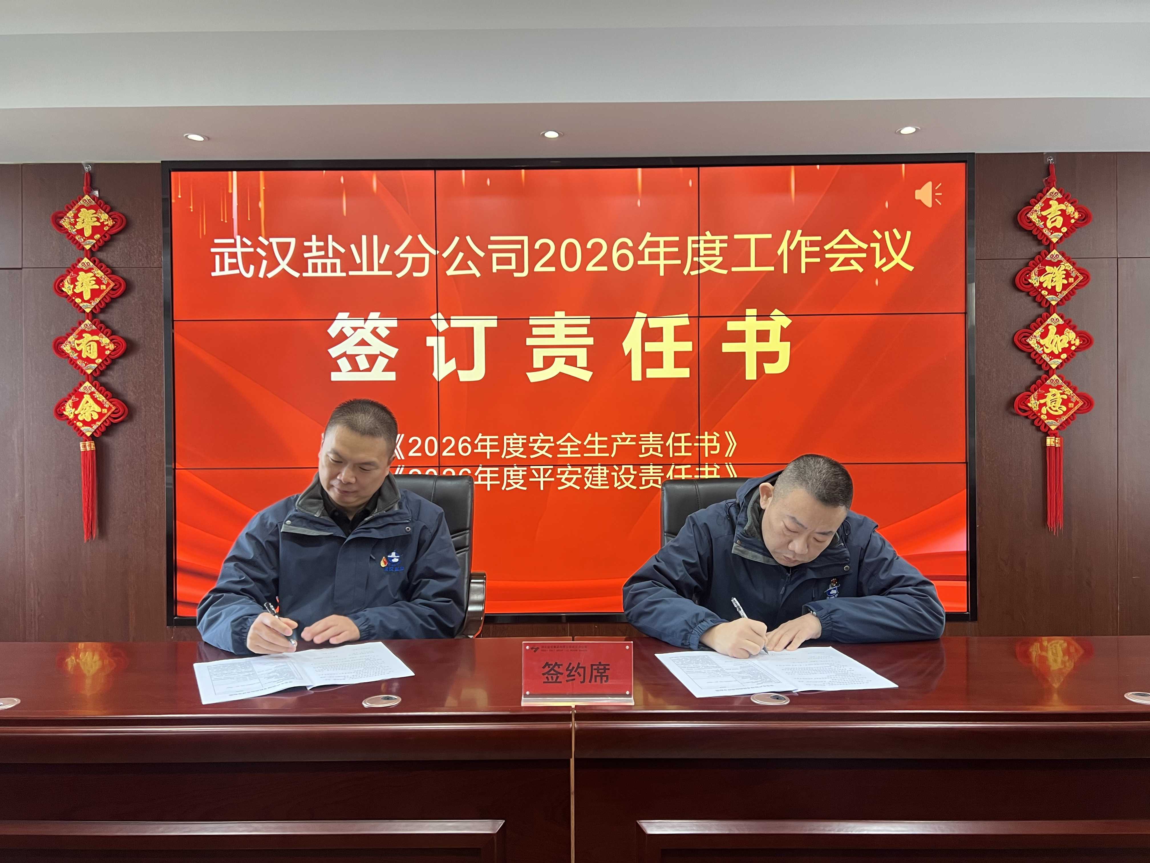 会议传达学习湖北盐业集团2026年度工作会会议精神,通报了武汉分公司2025年度主要经营指标完成情况及干部职工综合考核结果,表彰了先进典型。湖北农发集团2025年度先进工作者李北骥、胡波作交流发言,会议还交流学习了“农发先锋”获奖代表田慧的典型发言;商品业务部、党群人事部分别解读2026年度商品销售目标分解草案、目标管理与绩效激励方案,明确全年任务路径与考核导向。党委书记、总经理陈家乐与各单位代表签订了党建、经营、安全生产及平安建设责任书。
